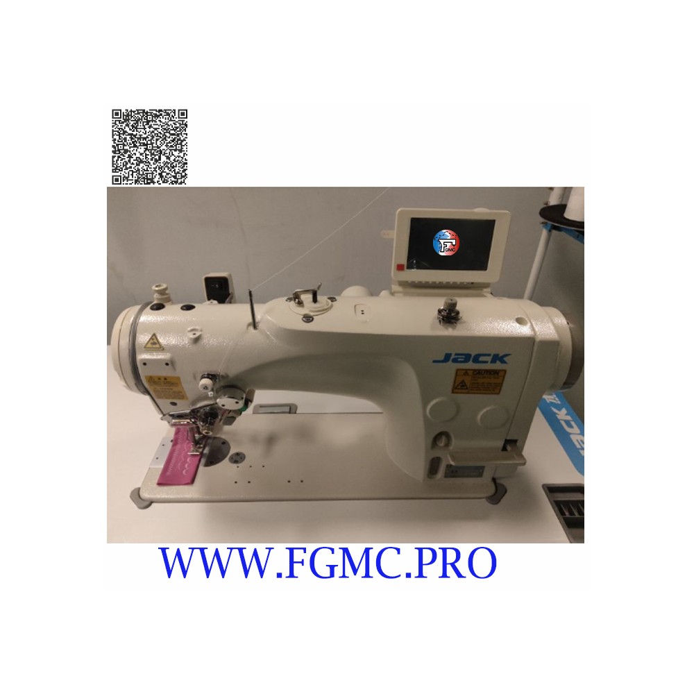 Machine à coudre électronique à point zigzag avec moteur intégré directement sur l'arbre, point noué, coupe-fil, griffe d'entraînement avec réglage de la longueur de point via l'écran tactile qui permet également de sélectionner les différents points ornementaux déjà enregistrés en mémoire, la possibilité de créer d'autres programmes directement sur la machine et de les enregistrer dans la mémoire interne de la machine jusqu'à un maximum de 20 programmes ou dans la mémoire USB externe jusqu'à un maximum de 999.
