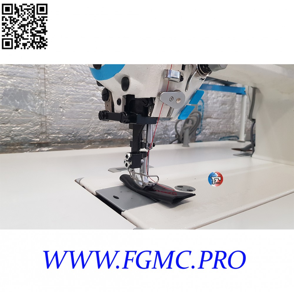 tissus de jeans et bien d'autres, quand il est nécessaire d'augmenter la force de pénétration du tissu. Le pied mobile assure un serrage stable du tissu, garantissant une excellente qualité de couture. Comme le fil est d'une épaisseur suffisante pour ce type de tissu, une productivité plus élevée. Ce type de machines est pour une large gamme de travaux de couture: industrie du meuble,